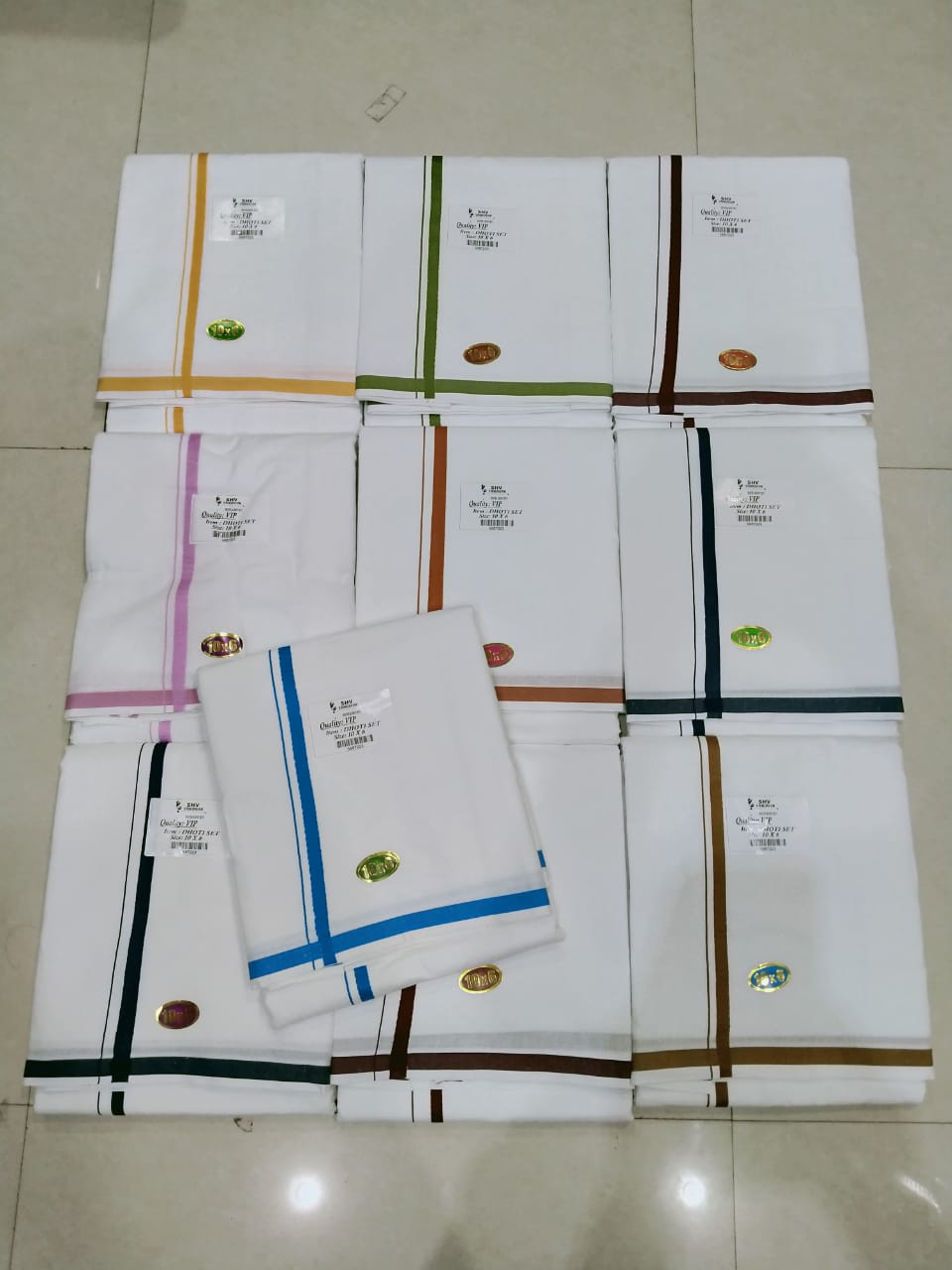 VIP Small Border Pure Cotton set 10*6 Dhoti 4.40 Duptta 2.30 100% pure cotton